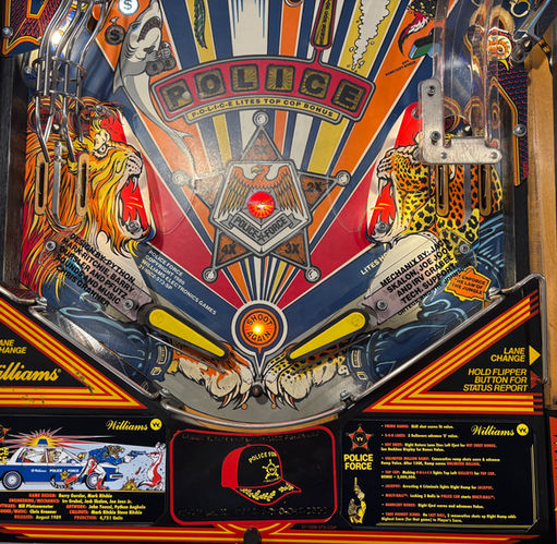Home Use for the past 35 years! This game was very popular and most you find today are very beat-up. This beautiful pinball has been through our extensive 40-hour shop-out process. It has been disassembled to clean, wax, and replace worn rubber rings. All plastic posts have been sonic cleaned, and the old dim incandescent lights have been replaced with new LED lights with the backside of the inserts cleaned. You will be amazed at how bright and clear the playfield lights are! It has new decals on the drop targets and spinners. Our artist has touched up a few spots on teh playfield as well as the cabinet to make it look great! The Brand New Rottendog MPU will last for decades and has NVRAM installed so no more battery corrosion to worry about! . Newly installed powder-coated legs with new leg levelers and cabinet protectors. Please make an appointment to visit our showroom and play the game today!
