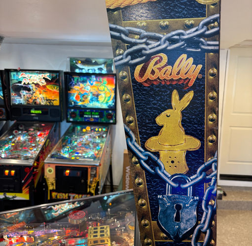 If you know pinball machines, you know this one. Theatre of Magic Pinball is very desirable and rare. This pinball has been through our extensive 40-hour shop-out process. It has been disassembled to clean, wax, and replace worn rubber rings. All plastic posts have been sonic cleaned, and the old dim incandescent lights have been replaced with new LED lights with the backside of the inserts cleaned. You will be amazed at how bright and clear the playfield lights are! It has two new ramps installed with new decals and one original ramp as back-up. We have also taken the time to install specialized effecs lights in the backglass. The MPU has NVRAM installed so no more battery corrosion to worry about! It also has a color display installed at a $700 value. The playfield is nearly flawless, and the cabinet decals look wonderful. Newly installed powder-coated legs with new leg levelers and cabinet protectors. Make and appointment to visit our showroom and play the game today!